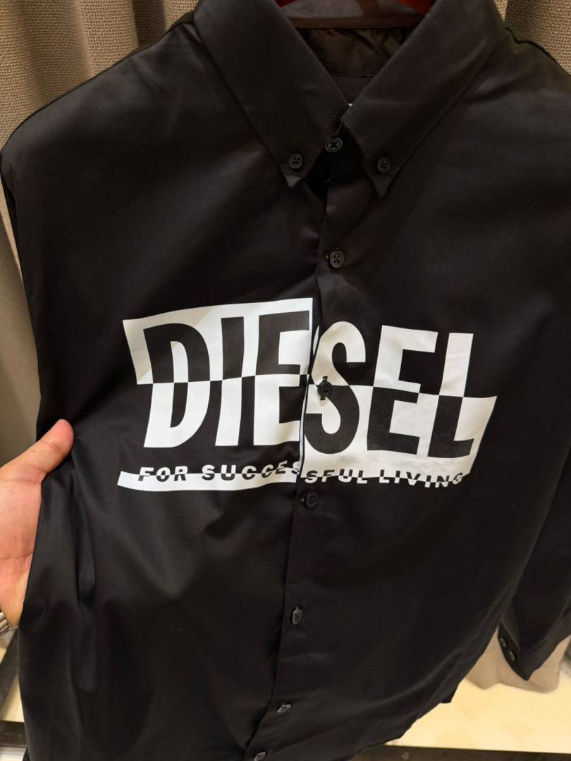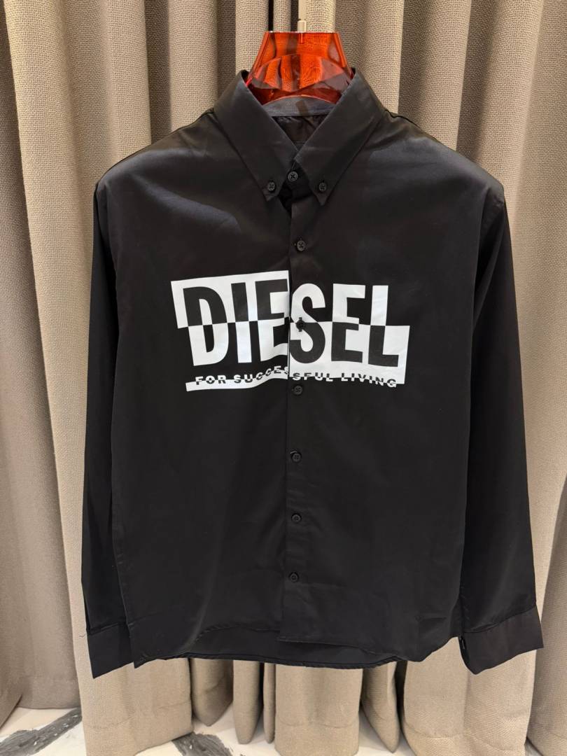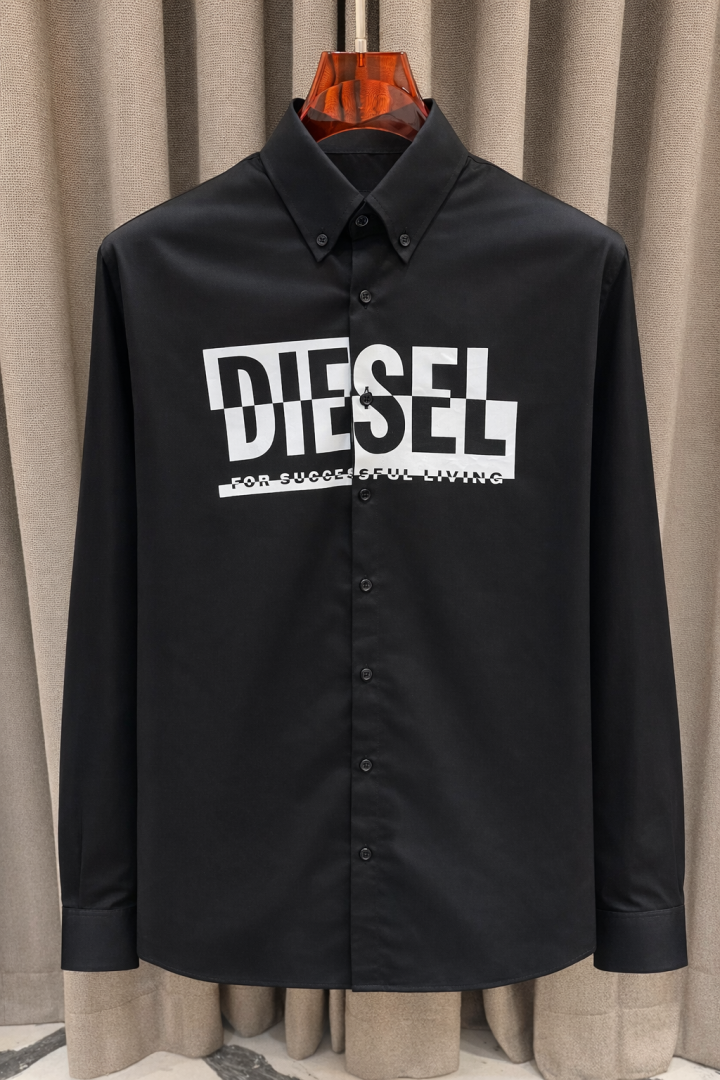 Diese_l Middle Brand Print Full Sleeves Shirt Black